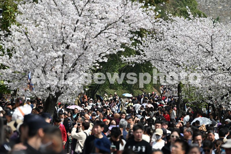 图片说明:2025年3月24日,江苏南京,鸡鸣寺路的樱花进入最佳观赏期,赏花游客人头攒动。