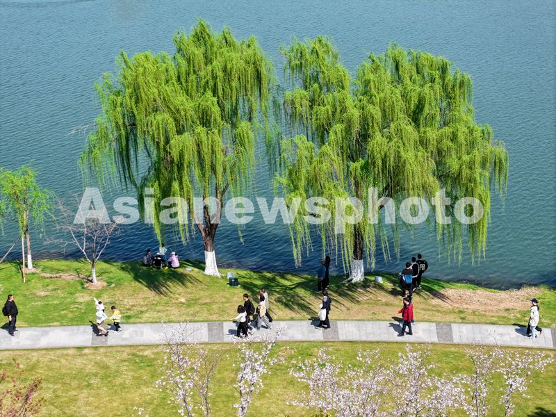 2025年3月22日,江苏南京玄武湖公园春意盎然,樱花绽放,柳枝吐绿,吸引众多游客前来踏青赏花,尽享美好春光。