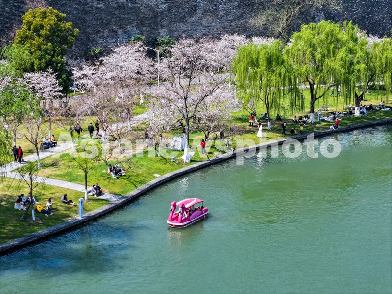 2025年3月22日,江苏南京玄武湖公园春意盎然,樱花绽放,柳枝吐绿,吸引众多游客前来踏青赏花,尽享美好春光。