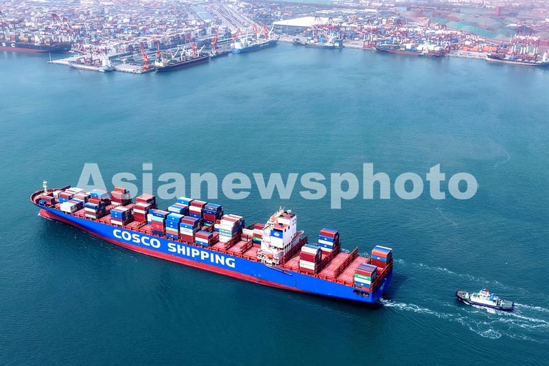 2025年3月24日,随着一艘艘满载外贸集装箱、进口原油和铁矿石等的货轮频繁进出港口,山东港口青岛港外的胶州湾航道货运一片繁忙。