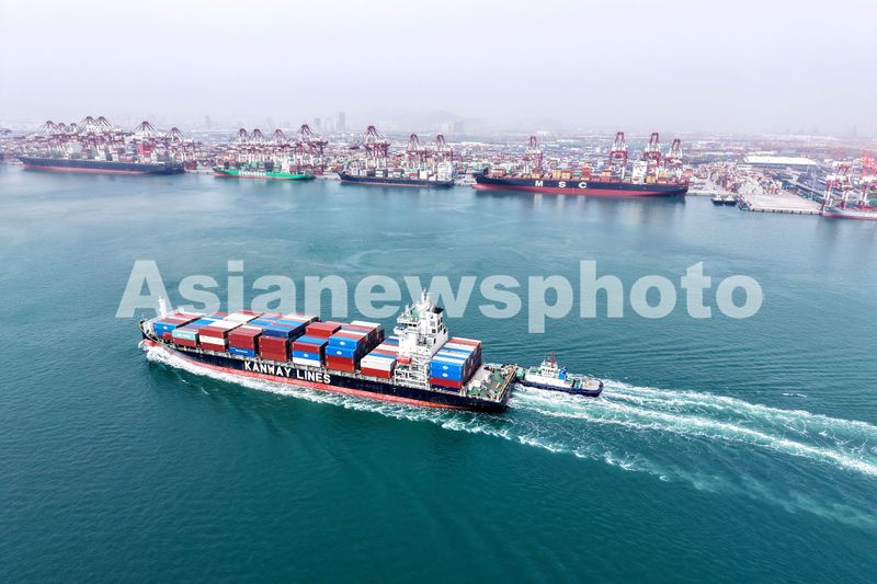 2025年3月24日,随着一艘艘满载外贸集装箱、进口原油和铁矿石等的货轮频繁进出港口,山东港口青岛港外的胶州湾航道货运一片繁忙。
