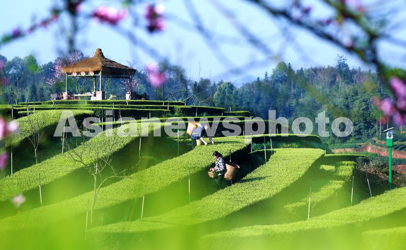 图片说明:2025年3月25日,茶农在四川省泸州市纳溪区大渡口镇拂羽茶园采摘明前茶鲜叶,茶园里一派繁忙景象。