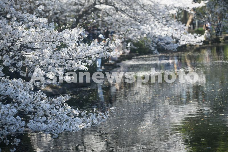 2025年3月25日,游客在杭州西湖曲院风荷观赏盛开的樱花。
