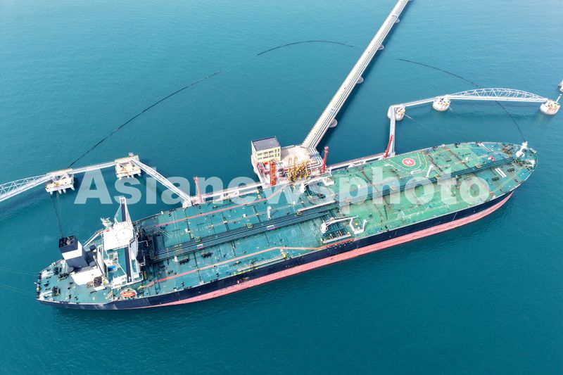 2025年3月24日,山东港口青岛港,油轮在卸载进口原油。