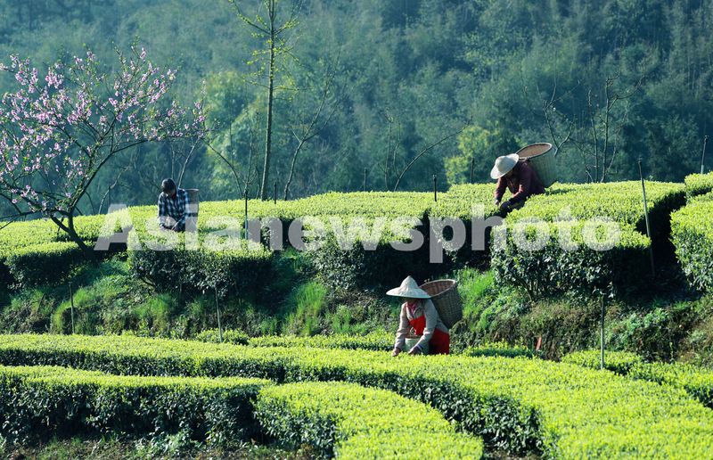 图片说明:2025年3月25日,茶农在四川省泸州市纳溪区大渡口镇拂羽茶园采摘明前茶鲜叶,茶园里一派繁忙景象。