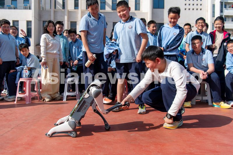 浙江金华:机器狗进校园 激发科技梦想 查看组图