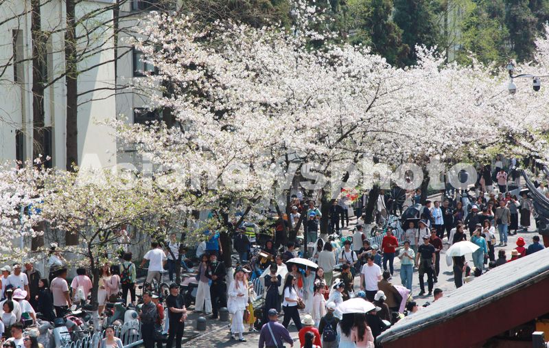 江苏南京:鸡鸣寺路樱花盛开 游人如织