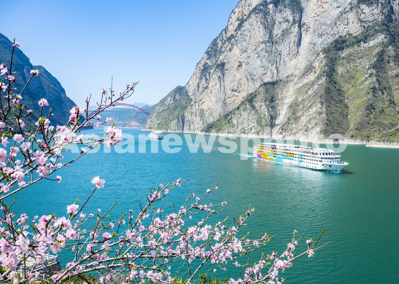 图片说明:2025年3月25日,游客乘坐游轮在长江三峡西陵峡湖北省宜昌市秭归县境内兵书宝剑峡游览。