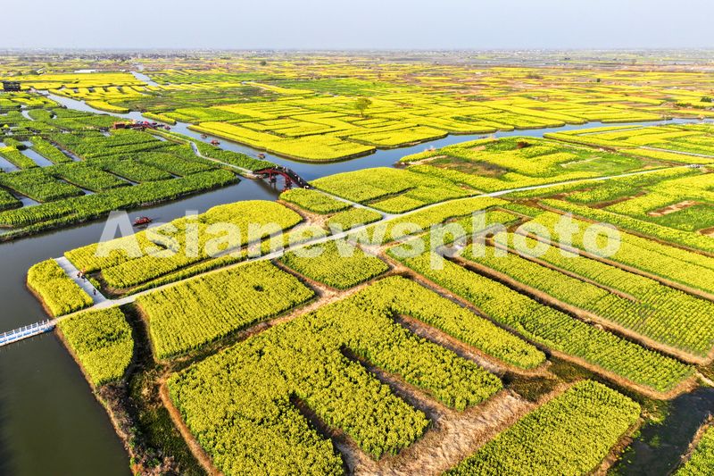 图片说明:2025年3月25日,游客在江苏省兴化市千垛景区赏花游玩。