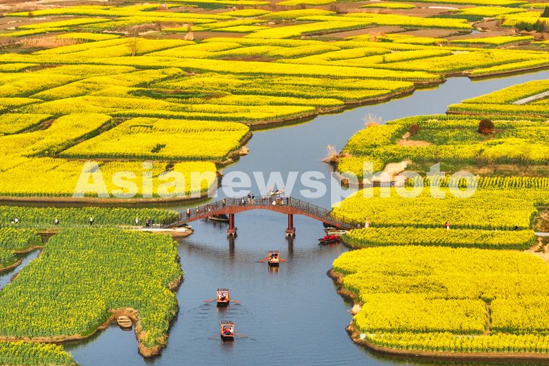 图片说明:2025年3月25日,游客在江苏省兴化市千垛景区赏花游玩。
