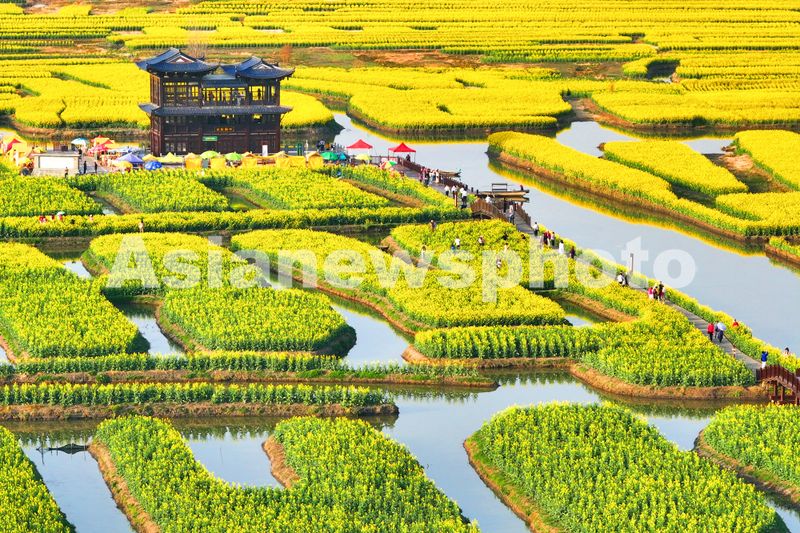 图片说明:2025年3月25日,游客在江苏省兴化市千垛景区赏花游玩。
