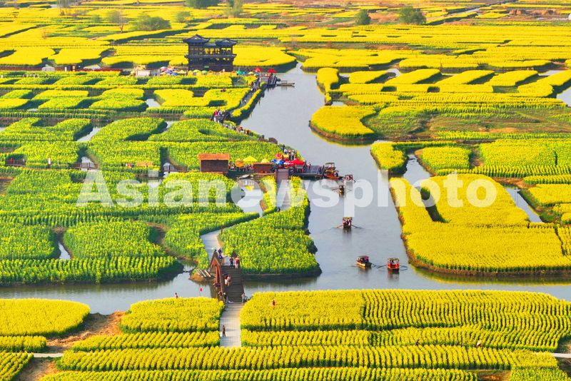 图片说明:2025年3月25日,游客在江苏省兴化市千垛景区赏花游玩。