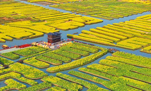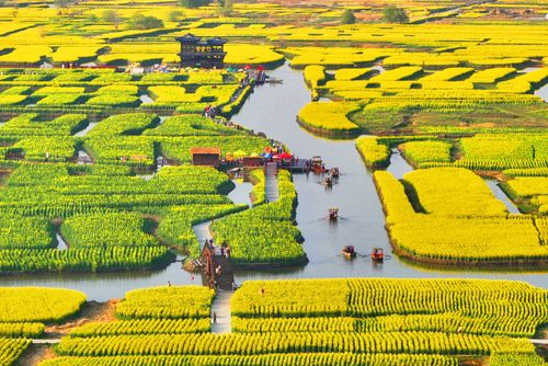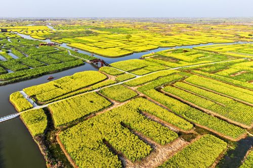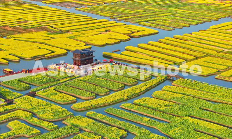 图片说明:2025年3月25日,游客在江苏省兴化市千垛景区赏花游玩。