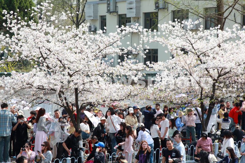 江苏南京:鸡鸣寺路樱花盛开 游人如织