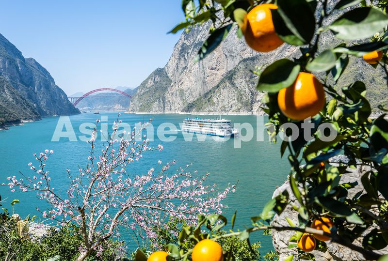 图片说明:2025年3月25日,游客乘坐游轮在长江三峡西陵峡湖北省宜昌市秭归县境内兵书宝剑峡游览。