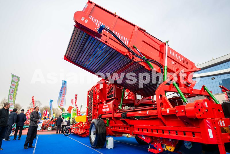 2025年3月26日,观众在第三十六届内蒙古农业博览会上了解一款农机具。
