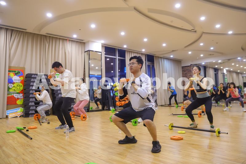2025年3月26日晚,在山东省青岛市李沧区融源东部体育中心举办的青年夜校“青春跃动·健康+”全民健身公益课堂,许多年轻人下班后来参加活力踏板操、力量塑形等健身运动,乐享健康生活方式。