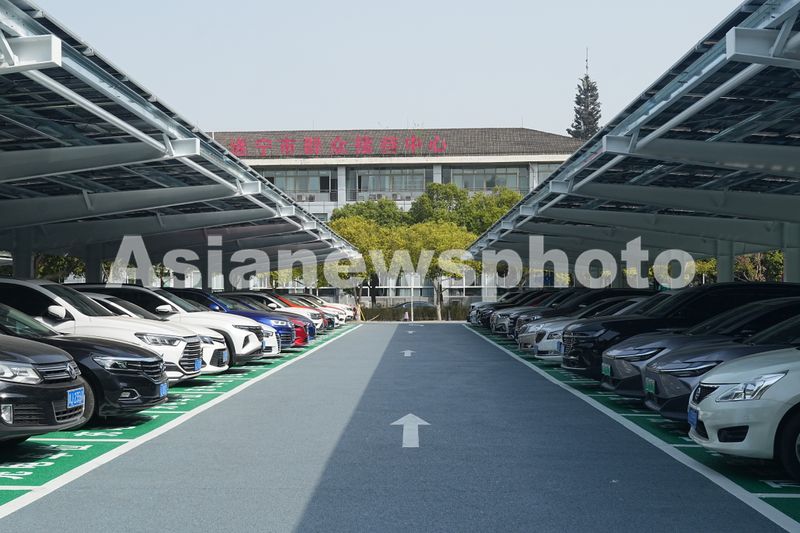 2025年3月27日,车辆有序停靠在四川省遂宁市环岛商务中心新建成并投入试运行的“光储充享”一体化示范项目停车场内。