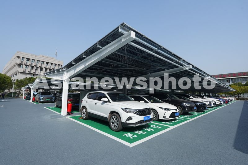2025年3月27日,车辆有序停靠在四川省遂宁市环岛商务中心新建成并投入试运行的“光储充享”一体化示范项目停车场内。