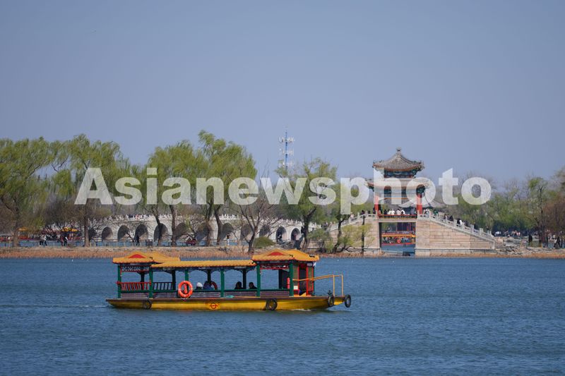 图片说明:2025年3月30日,北京颐和园内桃花竞相绽放,在碧水、翠柳映衬下,色彩艳丽,景美如画,吸引了大批游客前来观赏、拍照。