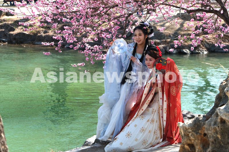 图片说明:2025年3月30日,北京颐和园内桃花竞相绽放,在碧水、翠柳映衬下,色彩艳丽,景美如画,吸引了大批游客前来观赏、拍照。