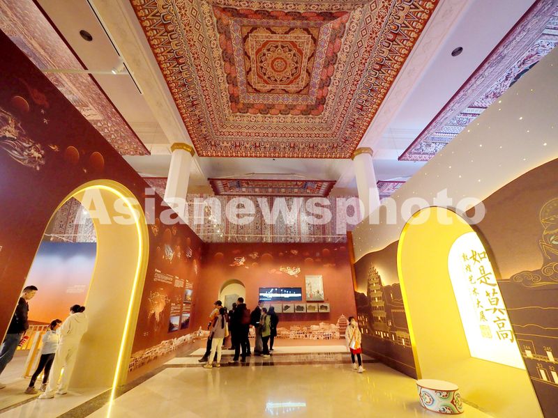 本次展览于3月29日开展,展出九座1:1复刻的敦煌石窟经典石窟群,同时还展出敦煌研究院珍藏的文物及壁画艺术精品近300件。