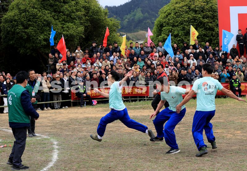 2025年3月31日,在广西柳州市融安县板榄镇,选手在参加抢花炮比赛中拼抢。当日是农历“三月三”,广西柳州市融安县板榄镇举行“三月三”传统抢花炮,来自桂黔两省的28支花炮队(其中男队17支,女队11支),在花炮场展开激烈角逐,通过抢花炮,庆祝广西民族传统节日“三月三”。