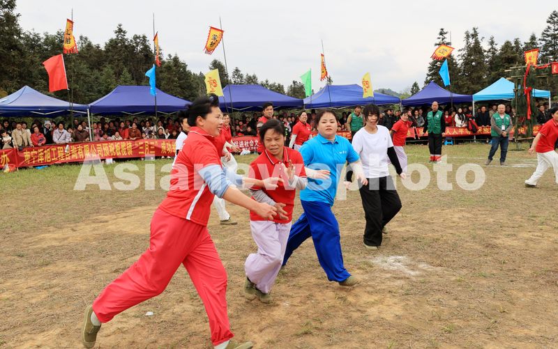 2025年3月31日,在广西柳州市融安县板榄镇,选手在参加抢花炮比赛中拼抢。当日是农历“三月三”,广西柳州市融安县板榄镇举行“三月三”传统抢花炮,来自桂黔两省的28支花炮队(其中男队17支,女队11支),在花炮场展开激烈角逐,通过抢花炮,庆祝广西民族传统节日“三月三”。
