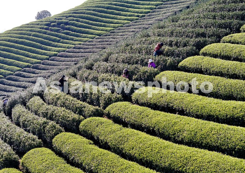 随着清明节气的临近,浙江省金华市武义县12万亩茶园新芽勃发、满山翠绿。为抢在清明前将头茬春茶采摘下山,连日来武义县有3万多名采茶工上山入园赶采头茬新茶,以提高种茶经济效益。