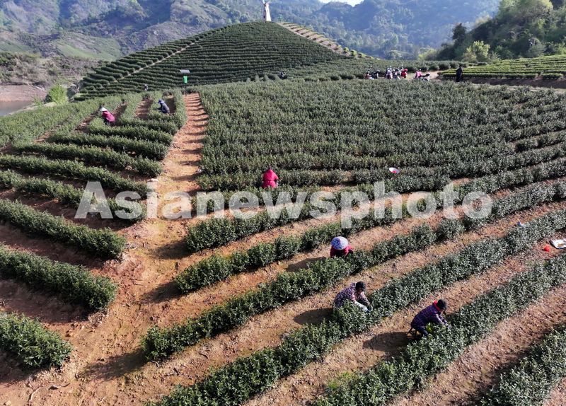 2025年4月2日,浙江省金华市武义县壶山街道正新屋村茶农在石鹅湖茶园抢采明前茶。