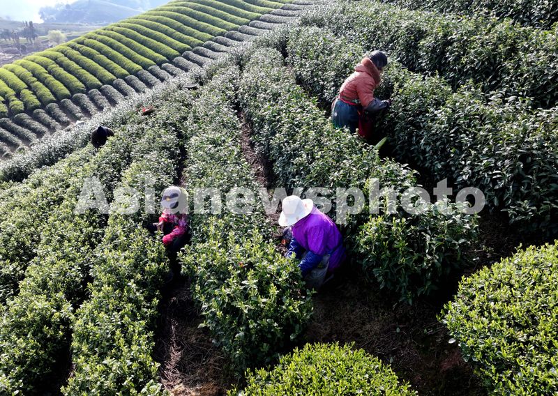 随着清明节气的临近,浙江省金华市武义县12万亩茶园新芽勃发、满山翠绿。为抢在清明前将头茬春茶采摘下山,连日来武义县有3万多名采茶工上山入园赶采头茬新茶,以提高种茶经济效益。