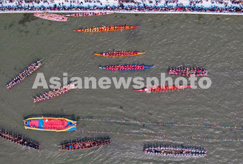 2025年4月4日,选手在参加茅山会船(无人机照片)。