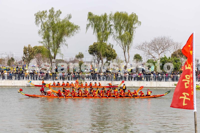 2025年4月4日,选手在参加茅山会船。 当日是清明节,江苏省兴化市举行一年一度的茅山会船盛会,船只和选手齐聚茅山西大河,参加竞技和表演。茅山会船始于南宋,现已被列入国家级非物质文化遗产名录。