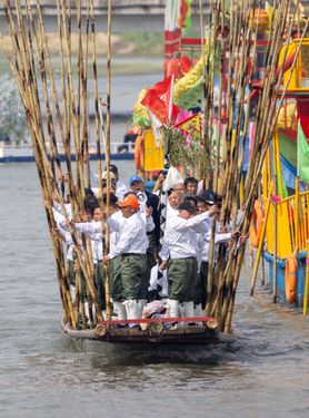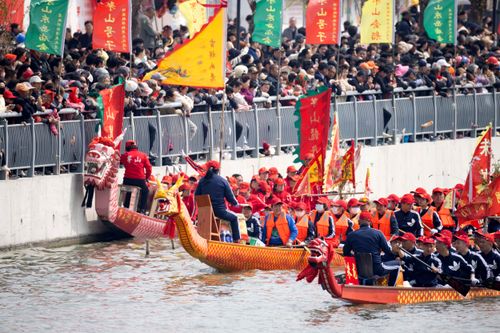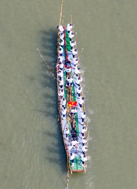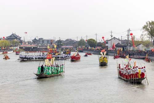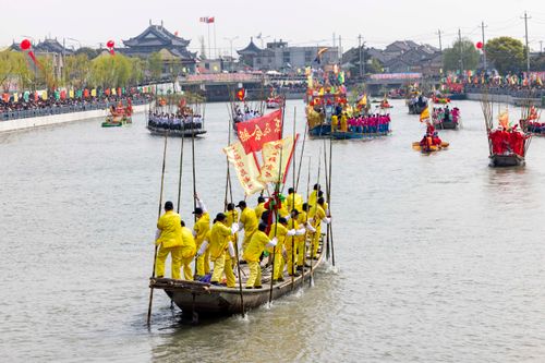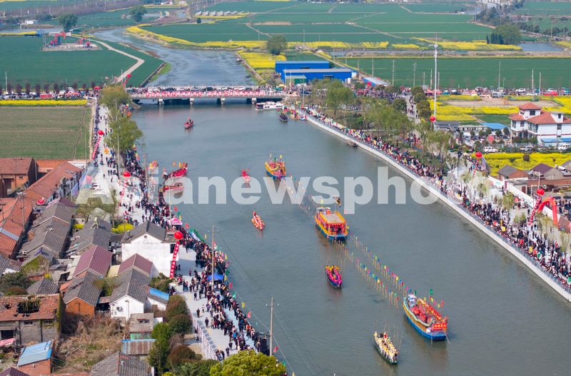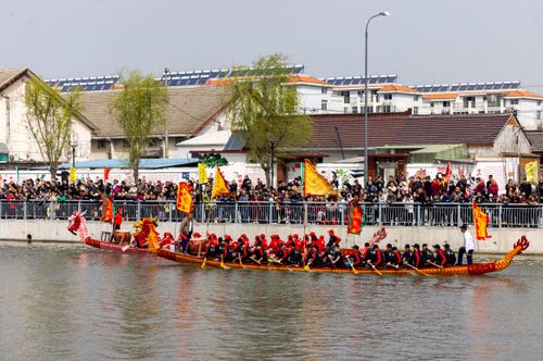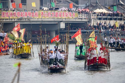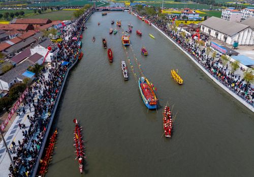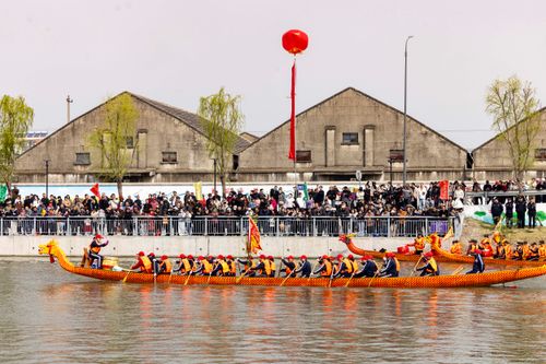 2025年4月4日,选手在参加茅山会船。 当日是清明节,江苏省兴化市举行一年一度的茅山会船盛会,船只和选手齐聚茅山西大河,参加竞技和表演。茅山会船始于南宋,现已被列入国家级非物质文化遗产名录。