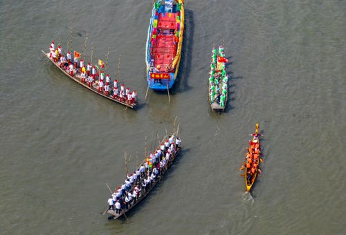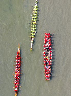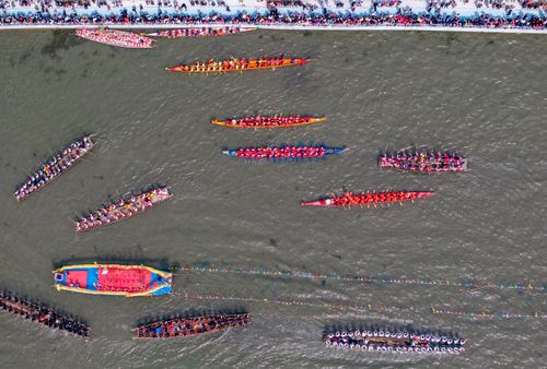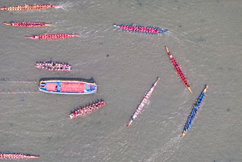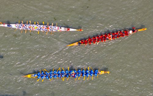 2025年4月4日,选手在参加茅山会船(无人机照片)。