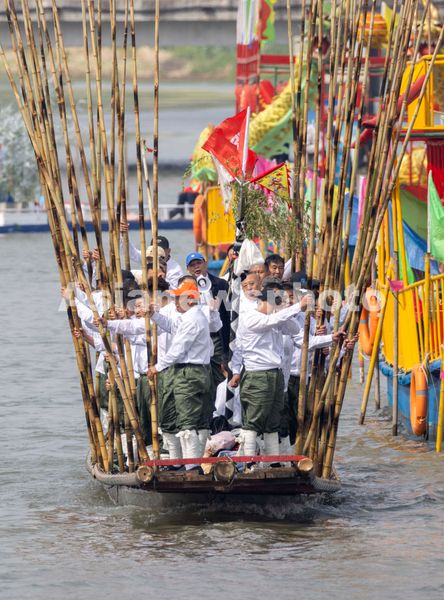 2025年4月4日,选手在参加茅山会船。 当日是清明节,江苏省兴化市举行一年一度的茅山会船盛会,船只和选手齐聚茅山西大河,参加竞技和表演。茅山会船始于南宋,现已被列入国家级非物质文化遗产名录。