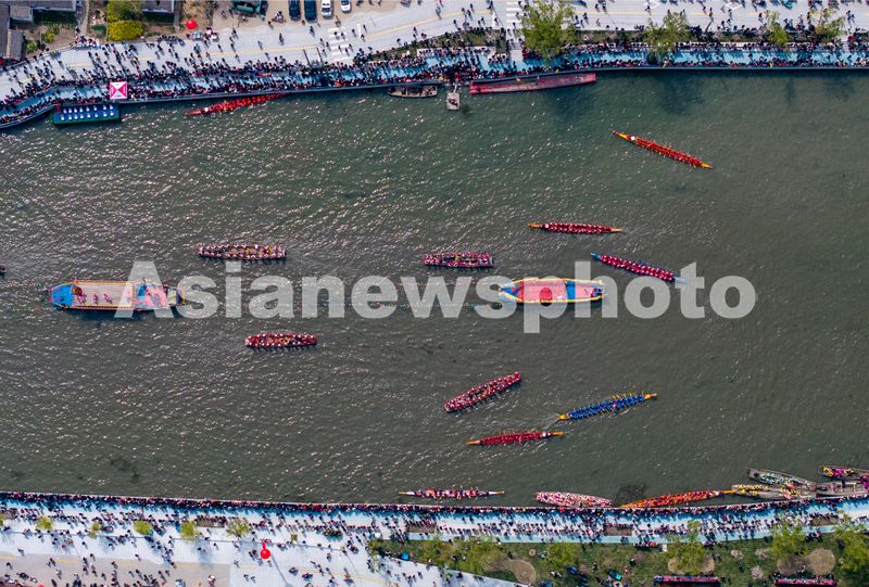 2025年4月4日,选手在参加茅山会船(无人机照片)。