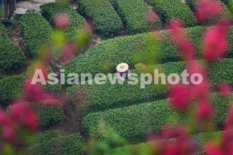 图片说明:4月6日,茶农在广西昭平县南山茶海高山生态茶园采摘春茶。