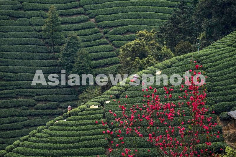图片说明:4月6日,茶农在广西昭平县南山茶海高山生态茶园采摘春茶。