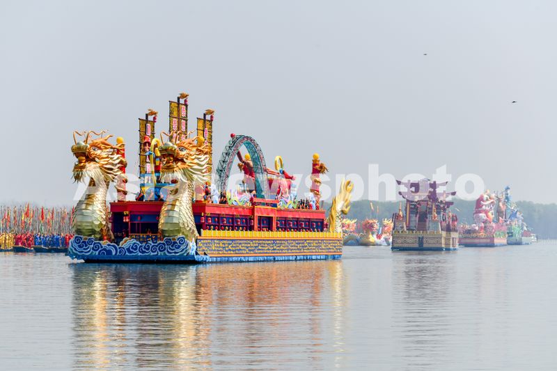 2025年4月6日,江苏泰州姜堰溱潼会船在江苏省泰州市姜堰区溱湖国家湿地公园开幕,五百多条各式船只和上万名会船选手飞篙走桨,弄潮击浪,演绎历久弥新的民俗画卷。