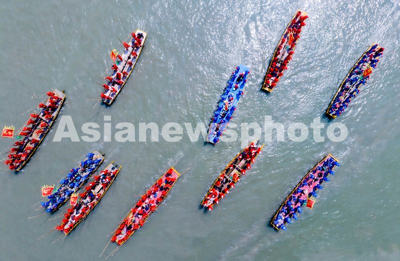 2025年4月6日,船只参加会船表演(无人机照片)。