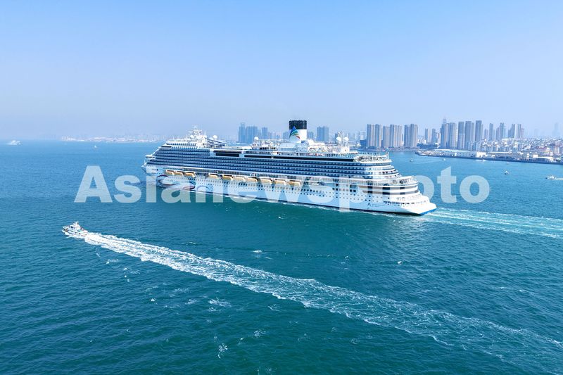 2025年4月6日,山东青岛胶州湾航道,“爱达・魔都”号邮轮缓缓驶入青岛邮轮母港。青岛是“爱达・魔都”号邮轮中国海岸巡游离沪运营首站,也是“爱达・魔都”号首次于上海以外的中国港口城市亮相。
