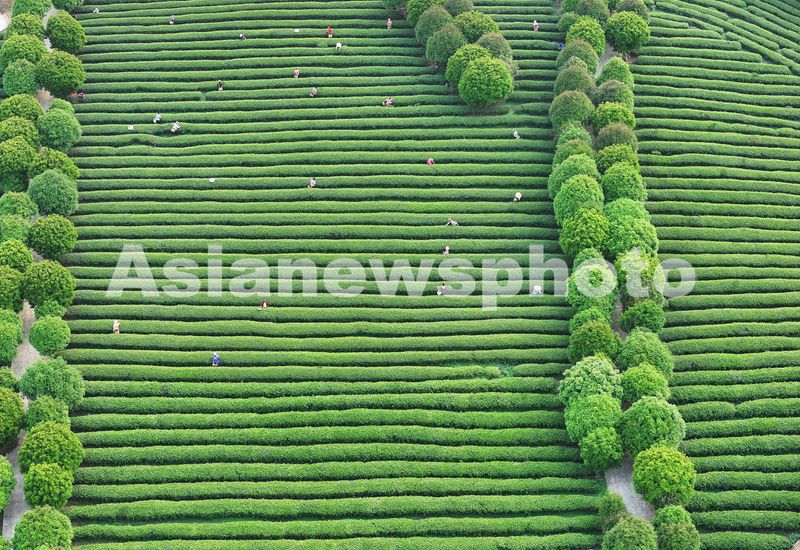 图片说明:4月6日,茶农在广西昭平县昭平镇马圣村一有机茶种植基地采摘春茶。