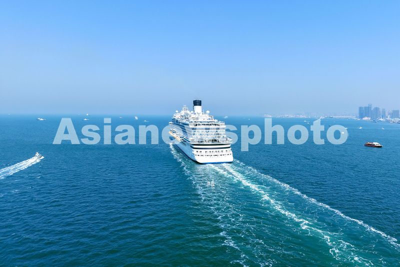 2025年4月6日,山东青岛胶州湾航道,“爱达・魔都”号邮轮缓缓驶入青岛邮轮母港。青岛是“爱达・魔都”号邮轮中国海岸巡游离沪运营首站,也是“爱达・魔都”号首次于上海以外的中国港口城市亮相。