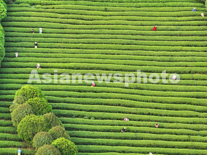 图片说明:4月6日,茶农在广西昭平县昭平镇马圣村一有机茶种植基地采摘春茶。