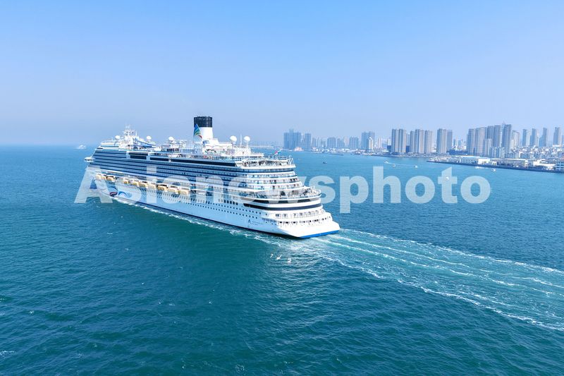 2025年4月6日,山东青岛胶州湾航道,“爱达・魔都”号邮轮缓缓驶入青岛邮轮母港。青岛是“爱达・魔都”号邮轮中国海岸巡游离沪运营首站,也是“爱达・魔都”号首次于上海以外的中国港口城市亮相。