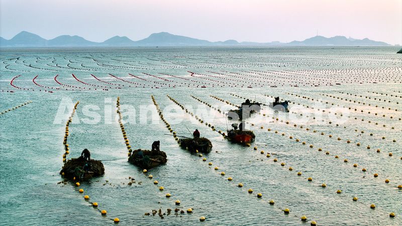 眼下,山东省荣成市海带迎来收获旺季,各大海带养殖区百舸争流,海带收割作业船只穿梭在养殖区收割海带,海上呈现一派繁忙的丰收景象。