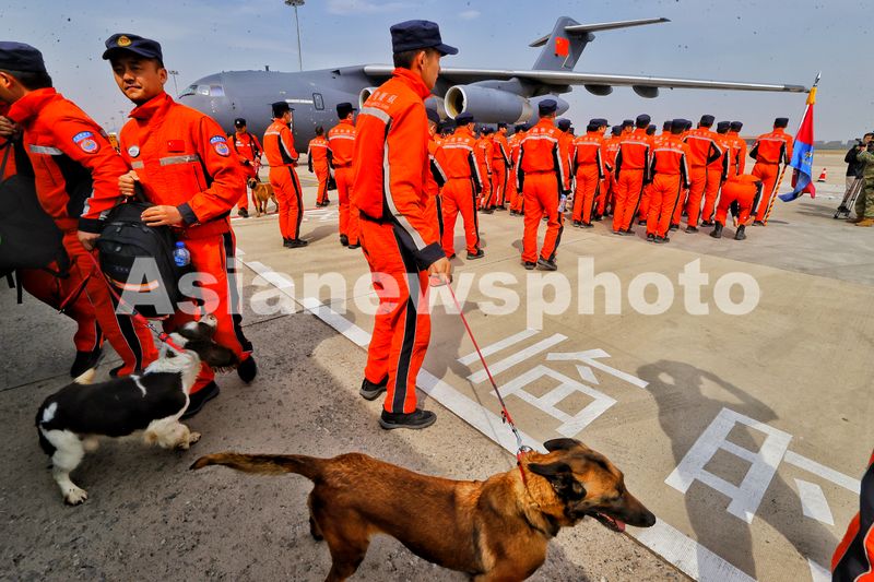 2025年4月9日,中国救援队队员抵达北京首都国际机场。