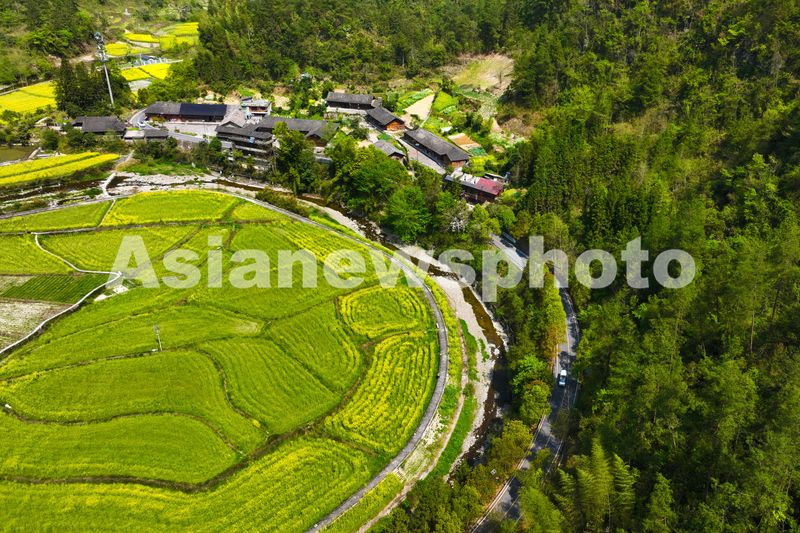 图片说明:2025年4月10日,自驾游车行驶在在重庆市黔江区小南海镇新建村土家十三寨的公路上。