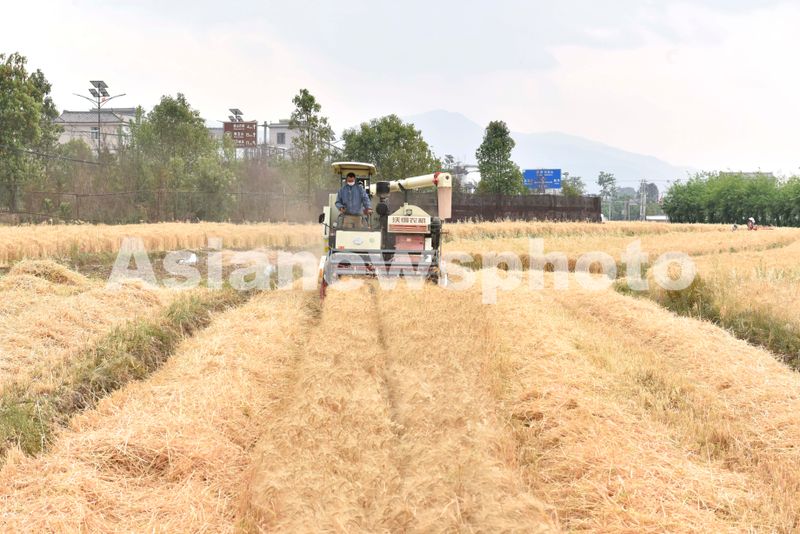 云南巍山:抢收大麦颗粒归仓 查看组图